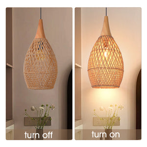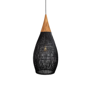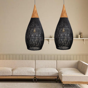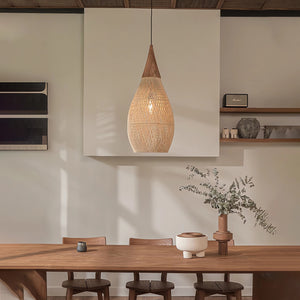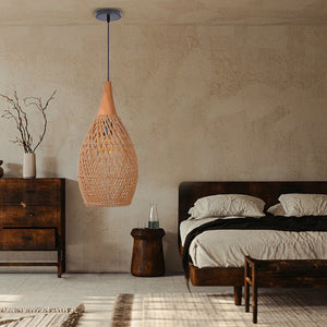 Handcrafted Water-Drop Shaped Rattan and Wood Pendant Light