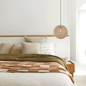 Warm Ambient Lighting: Its intricate woven structure diffuses light softly, creating a warm and inviting atmosphere ideal for cozy settings.