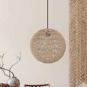 This pendant light combines the natural warmth of handwoven cotton rope with the sturdy elegance of iron, creating a captivating focal point. Its soft, ambient glow brings a cozy and inviting atmosphere to any room, perfect for living rooms, dining spaces, or cafes. With its round shape and artistic design, it effortlessly balances modern style with a touch of rustic charm.