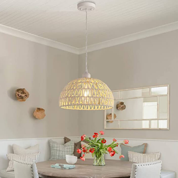 Handwoven Hemp Rope Classic Bowl Shaped Pendant Light Retro Style