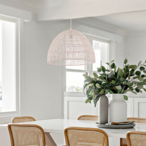 Bring natural beauty and artisanal craftsmanship into your home with this handwoven paper rope dome pendant ceiling light. Designed with a durable iron frame and an eco-friendly paper rope weave, it offers both strength and elegance. The dome shape softly diffuses warm 2700K light, creating a cozy and inviting ambiance that’s perfect for living rooms, dining areas, kitchens, or cafés.