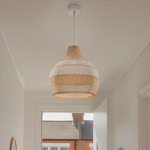 Crafted with artisanal rattan craftsmanship, this pendant light offers a unique, textured look while providing soft illumination. -