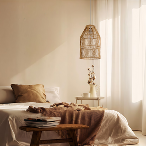 The unique criss-cross weaving style sets this pendant light apart, offering both tactile richness and artistic flair. Each strand of rattan is thoughtfully hand-placed, blending craftsmanship with modern simplicity. It’s ideal for adding a refined touch to any natural or Japandi-inspired interior.