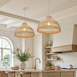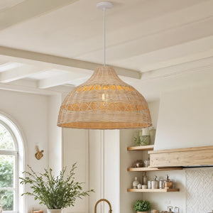 A: Yes, this rattan pendant light provides a warm glow ideal for kitchen ceiling lighting, especially above islands or breakfast areas.