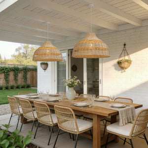 Warm & Inviting Ambiance: The warm white glow emitted through the handwoven rattan creates a cosy and inviting atmosphere, ideal for living room lights and kitchen pendant lights where comfort is key.