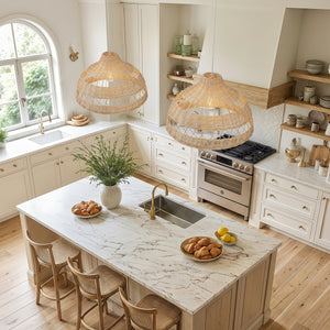 Bring natural warmth into your home with this double-layer rattan light, crafted to create a soft, atmospheric glow that enhances modern and rustic interiors. Its layered silhouette works beautifully as a kitchen ceiling feature or above a dining table, adding texture and artisanal charm to everyday spaces. Available in multiple sizes, this versatile pendant light suits kitchens, living rooms, and commercial settings alike. Designed for both style and function, it blends effortlessly with cosy kitchen lights arrangements.