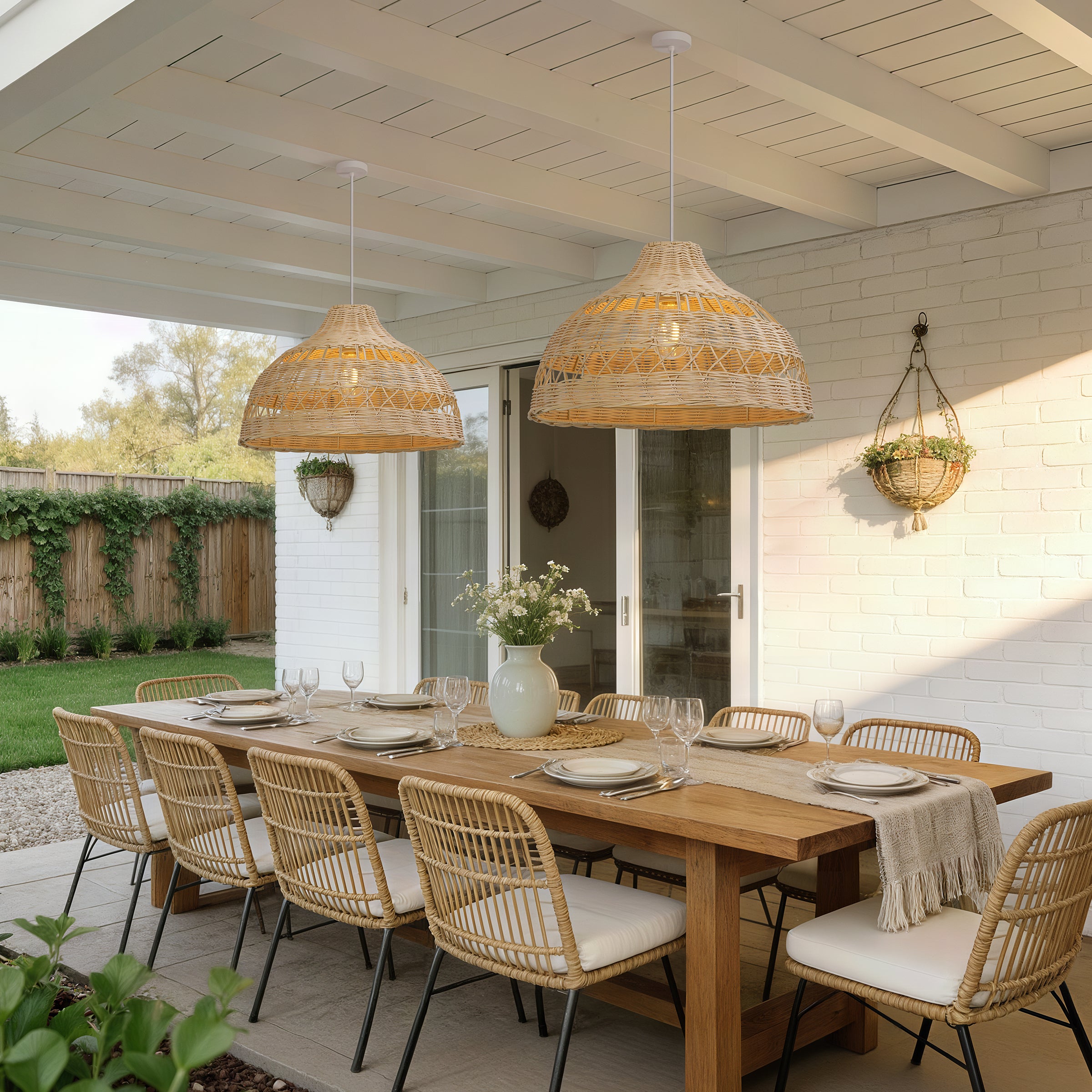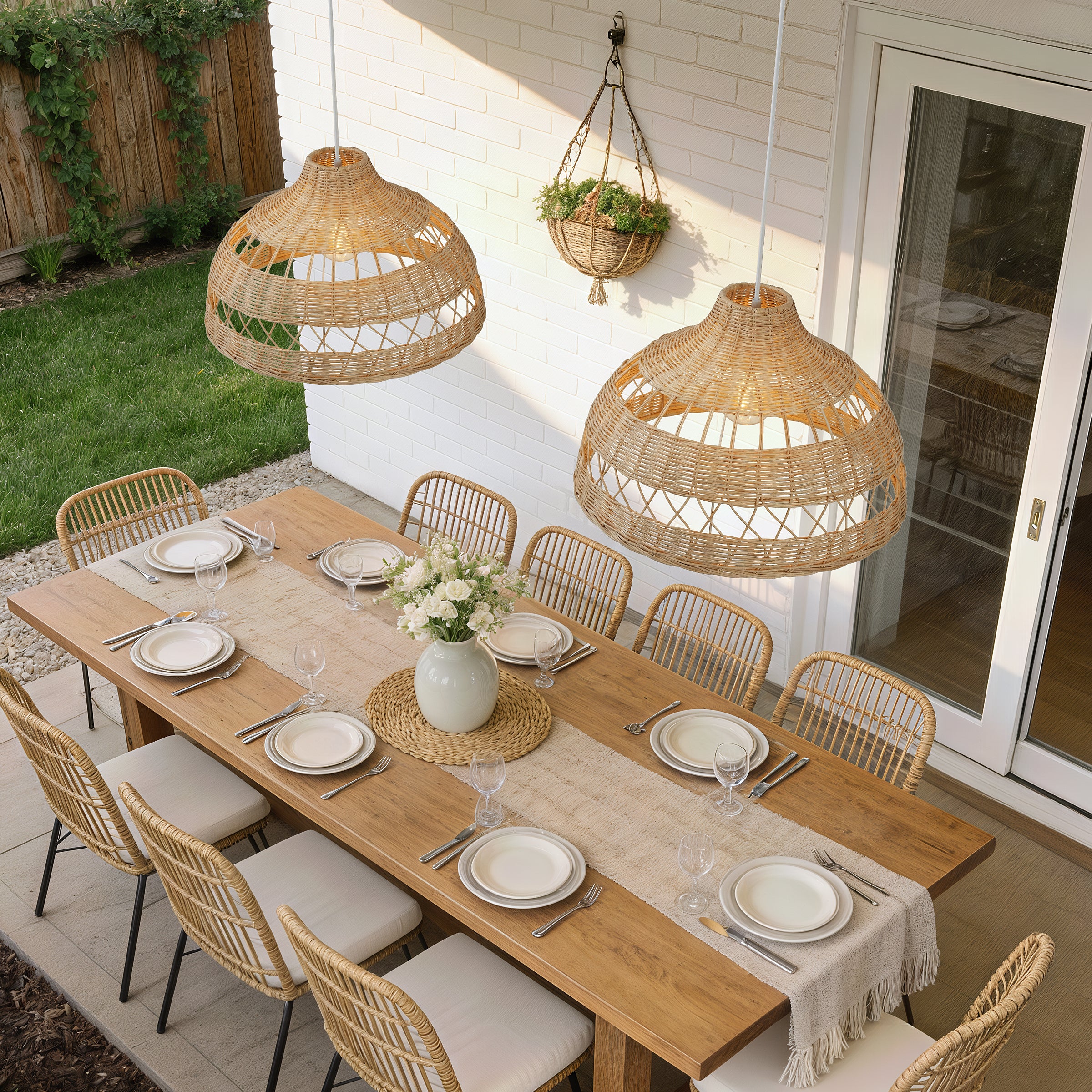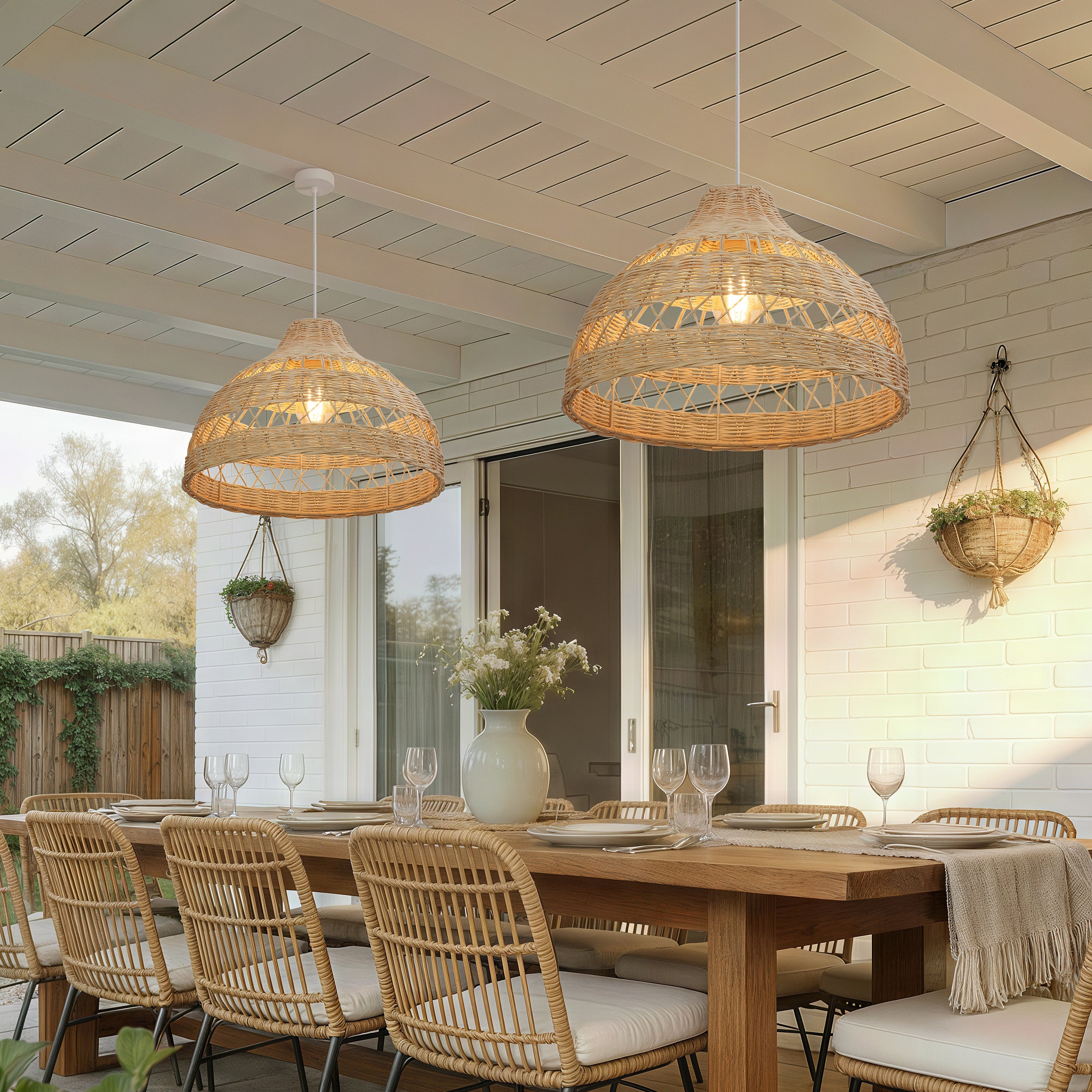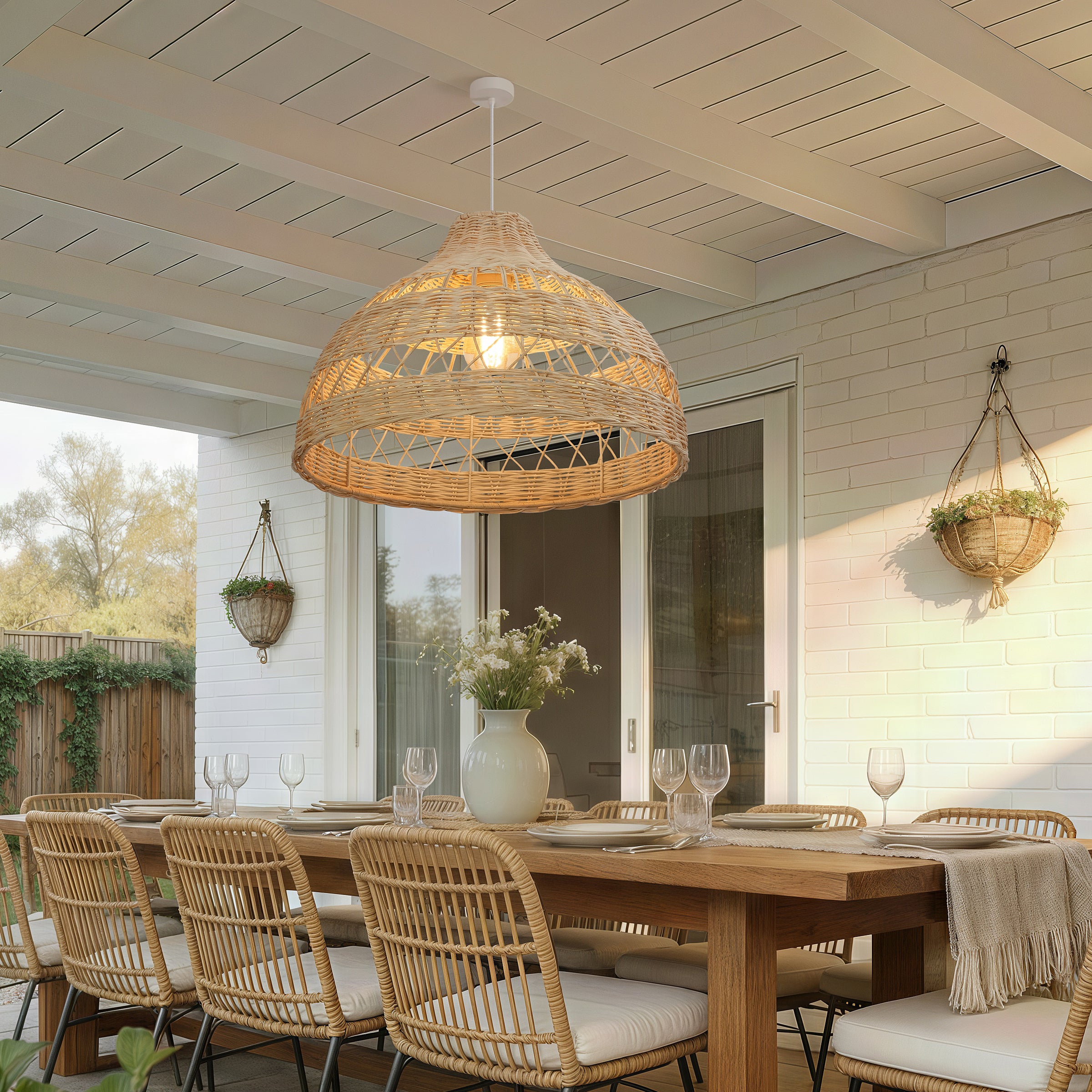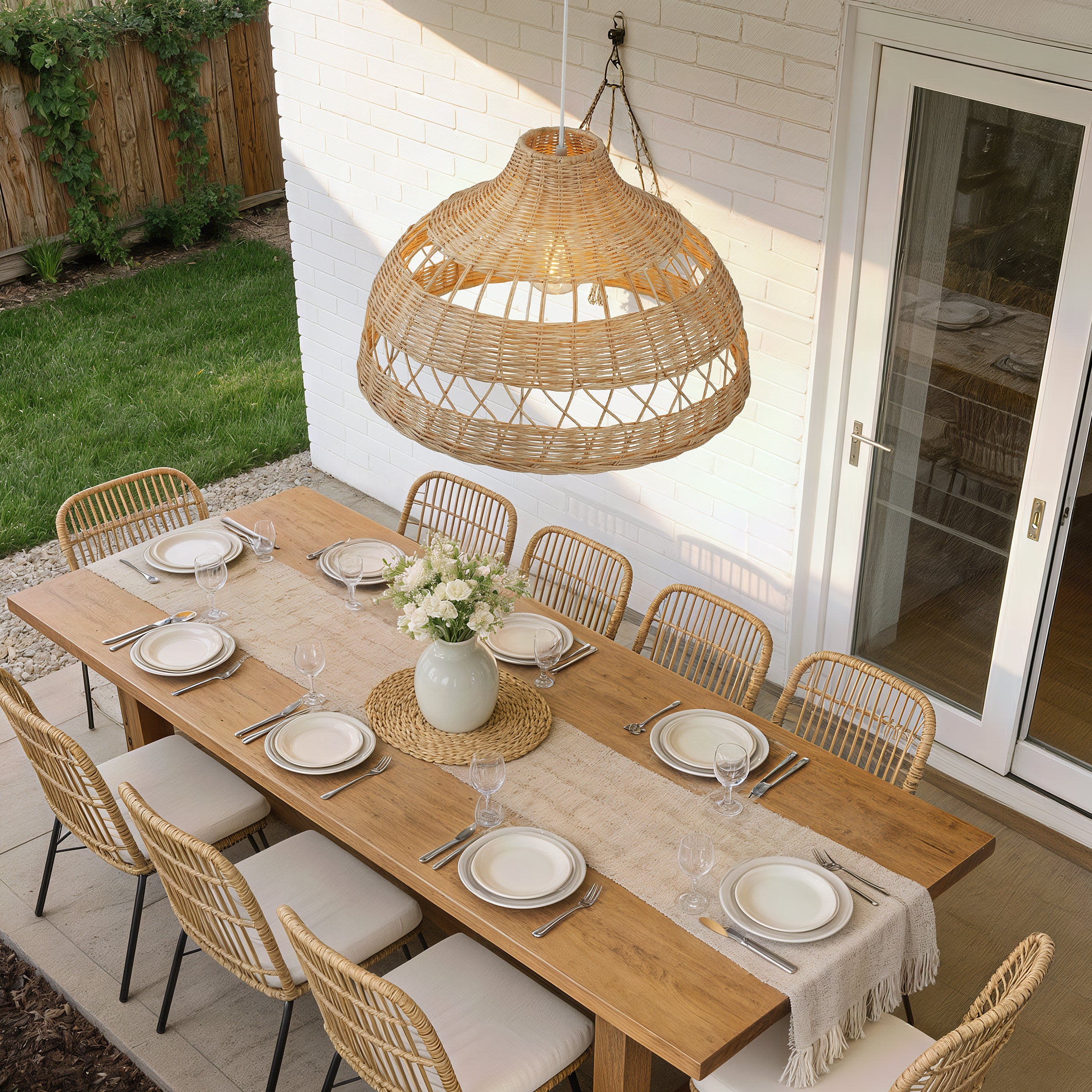 A: The double-layer rattan weave gently diffuses the light, creating soft shadows without reducing overall brightness.