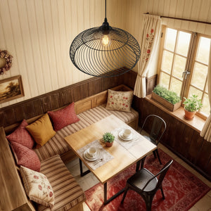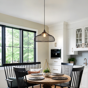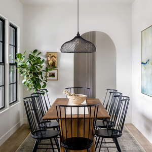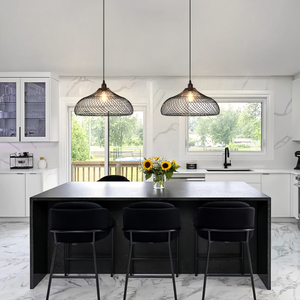 Our rattan and iron pendant lights blend natural texture with industrial lines, creating captivating light patterns. These statement pendant lights add modern rustic character to any space, casting beautiful linear shadows that transform your room's atmosphere.
