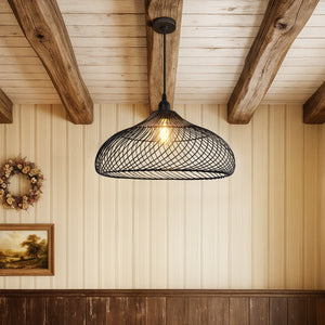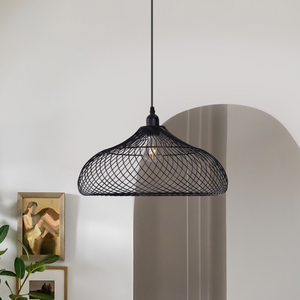 This black iron pendant light masterfully blends industrial style with a modern spiral geometric design, delivering both visual impact and functional illumination. Crafted from durable iron with a minimalist silhouette, it provides soft ambient lighting ideal for kitchens, dining rooms, and living areas in UK homes. The open spiral structure creates captivating light patterns while ensuring even light distribution. Easy to install and compatible with E27 bulbs, this versatile pendant light fitting adds sophisticated elegance to contemporary, industrial, or urban interiors.