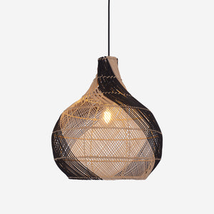 Elevate your space with this handcrafted rattan pendant light, inspired by the simple elegance of Japanese design. Its vase-like silhouette and two-tone woven texture cast soft, warm illumination, creating a peaceful, inviting atmosphere in any room. Ideal for living rooms, bedrooms, dining spaces, and entryways.