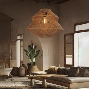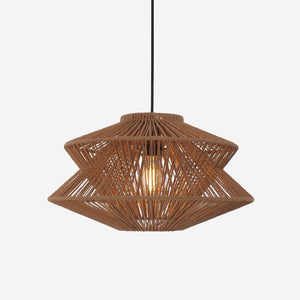 This khaki pendant light is meticulously crafted from iron and paper rope, blending modern simplicity with natural elements to create a unique geometric design. The paper rope shade is carefully handwoven, allowing soft light to filter through the gaps, creating a warm and inviting ambiance. Whether placed in a dining room, living room, or bedroom, this light adds a perfect balance of natural texture and modern appeal. Its distinctive design and natural khaki tone make it a standout piece in any space.