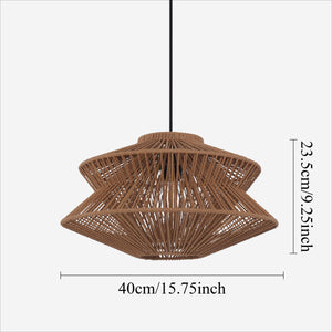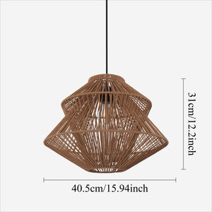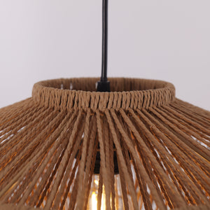 Brown Handwoven Paper Rope Pendant Light with Iron Frame