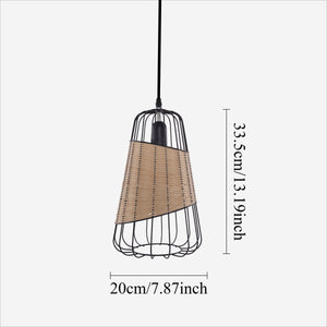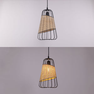 Glyph-Lantern-Inspired Iron Rattan Pendant Light for Cozy Natural Elegance