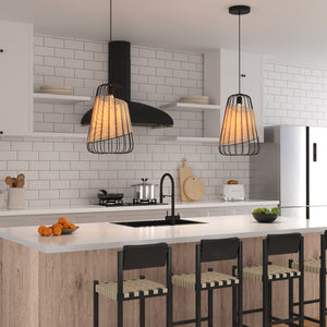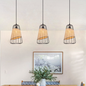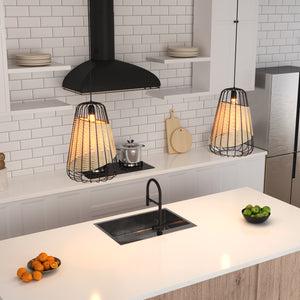 Discover our elegant Rattan & Iron Pendant Light, a sophisticated black pendant light that masterfully blends industrial iron frame with handwoven rattan for durable performance. This versatile pendant light fitting features adjustable hanging length and emits a soft ambient glow, making it ideal for living room ceiling lights, kitchen island lighting, and dining areas. Crafted with natural woven texture and warm natural tones, this versatile lighting solution complements both modern and rustic UK interiors. Easy to install and energy-efficient, it delivers both functional illumination and organic charm to enhance your home's ambiance.