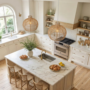 This rattan pendant offers a breezy, natural aesthetic perfect for open-plan rooms. The cage-like weave adds texture while allowing light to pass through beautifully. Ideal for anyone seeking elegance with an artisan touch.