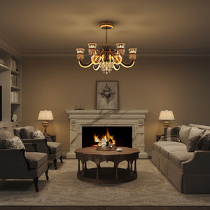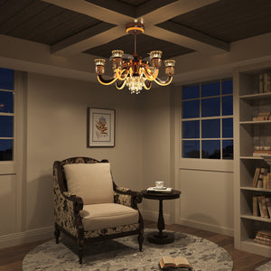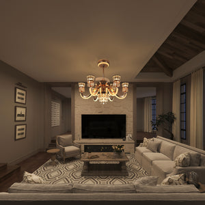 Crafted from high-quality alloy, crystal, and copper, this chandelier showcases meticulous craftsmanship, turning it into a sophisticated piece of art for your home. The overhead fan light design brings both elegance and practicality, while offering optimal lighting and air circulation.