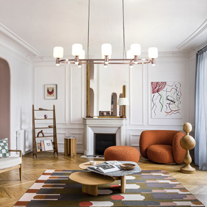 This modern antique bronze chandelier combines sculptural design with acrylic shades to create an elegant and eye-catching focal point in any room. The metal frame and acrylic shades offer a sleek and luxurious aesthetic, perfect for those seeking a mid-century chandelier that adds both style and functionality. The soft lighting creates a warm and inviting ambiance, ideal for dining rooms, living rooms, or any contemporary home décor.