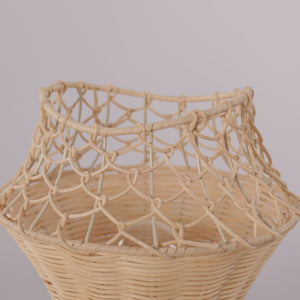 Made from rattan and iron, this lamp highlights the beauty of handcrafted materials and organic design. -