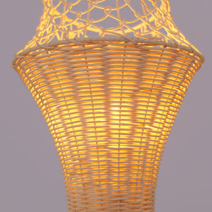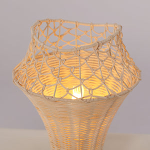 Infuse your space with natural warmth using this handcrafted woven rattan table lamp. Featuring a compact vase-like silhouette and natural tone, it fits seamlessly into Scandinavian, boho, and rustic interiors. Ideal for nightstands, side tables, or cozy corners, this lamp combines functional lighting with artisanal charm.