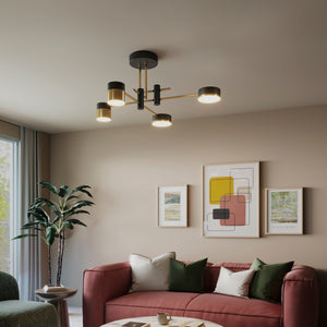 Durable Metal Lamp Body: Rust-resistant metal ceiling light with a sleek black and gold finish for long-lasting use.