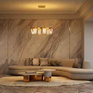This pendant ceiling light draws its inspiration from modern sculptural art. The combination of sturdy iron-aluminum alloy and the smooth texture of acrylic creates an elegant, flowing visual effect. Each light strip is crafted like a piece of fine art, reflecting soft light and infusing the space with a sense of modern sophistication and stylish charm. Ideal for living room ceiling lights or bedroom ceiling lights, it elevates any room with its artistic presence.