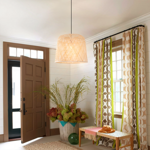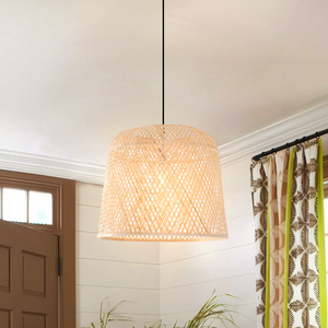 Bring natural charm and modern elegance to your home with this handwoven bamboo pendant light, also known as a rattan ceiling light. Crafted with care from eco-friendly bamboo, its detailed cross-weave shade diffuses a soft, ambient glow – ideal for living rooms, dining spaces, or festive decor.