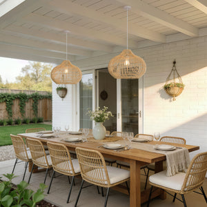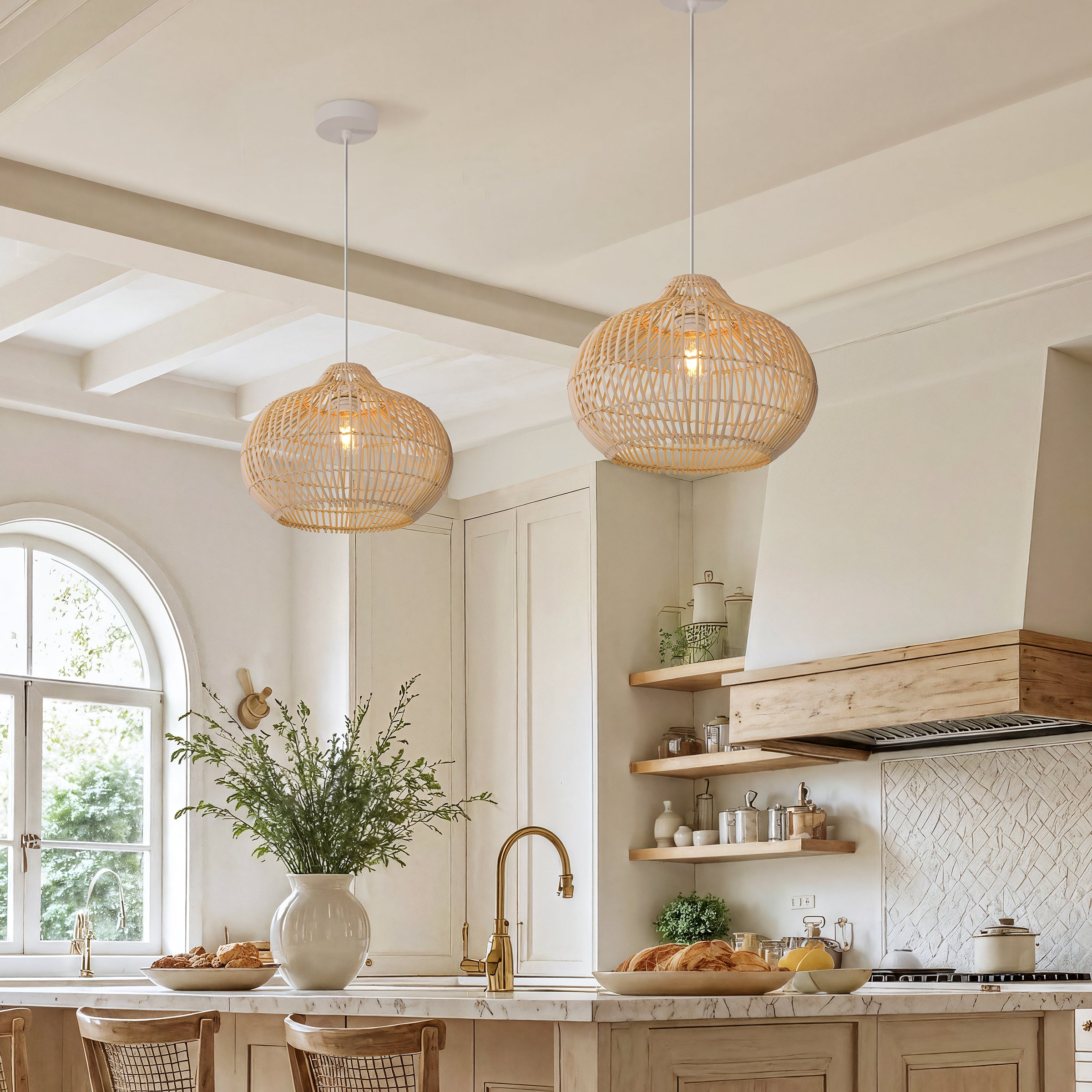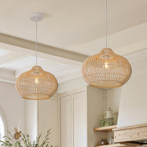 Bring a soft, natural glow into your home with this handcrafted rattan pendant light, designed to add warmth and texture to modern interiors. Its woven bamboo drum shade creates gentle, diffused lighting that works beautifully as a kitchen ceiling light or above a dining table. The airy basket form blends effortlessly with coastal, boho, and Scandinavian décor, offering a stylish alternative to traditional ceiling light fixtures. With an adjustable 120cm cable, it suits various room heights and works well in kitchens, hallways, and relaxed living spaces. This versatile piece brings artisanal charm while functioning as an elegant pendant light for everyday use.