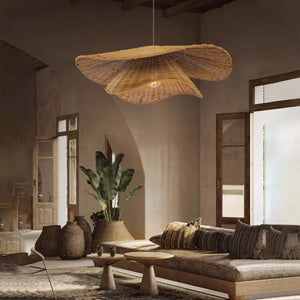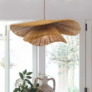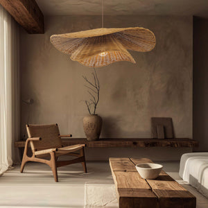 This organic woven rattan pendant light masterfully combines handwoven natural rattan with a sleek iron frame, creating a harmonious balance of natural texture and industrial elegance. Inspired by a flowing leaf shape, it serves as a stunning dining room ceiling light and living room pendant lamp, emitting a soft diffused glow that enhances cozy atmospheres. With easy UK installation and versatile placement, this rattan iron fixture elevates bedrooms, kitchens, or hallways, delivering both artistic charm and functional ambient lighting to your home.