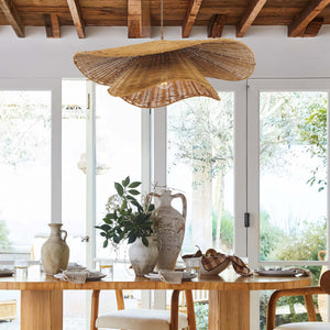 A: Absolutely. This organic woven rattan light is designed as an ideal dining room ceiling light, providing a warm ambient glow that enhances both meals and gatherings with its natural aesthetic.