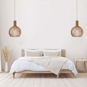 The minimalist wood pendant light brings a touch of natural elegance, ideal for modern pendant lighting setups. -