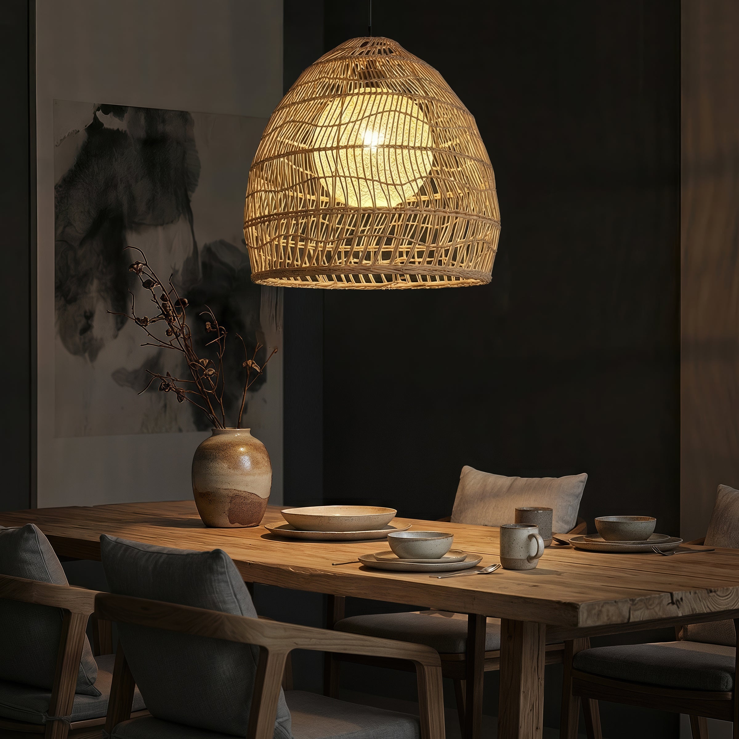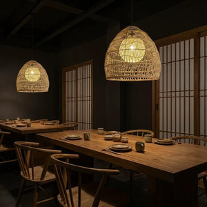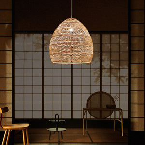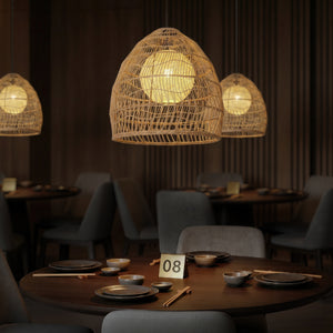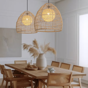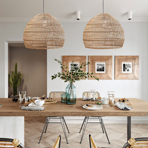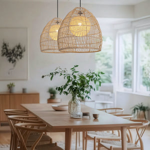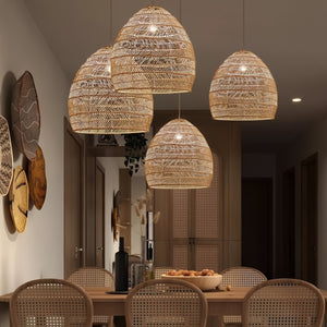 Natural Rattan Pendant Light | Handwoven Ceiling Lamp for Kitchen & Dining Room