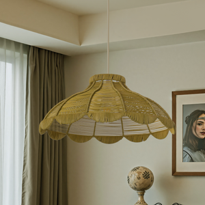 Natural Rattan with Reseda Hue: Crafted from handwoven rattan, this pendant light features earthy tones that seamlessly blend into neutral or bohemian décor styles.