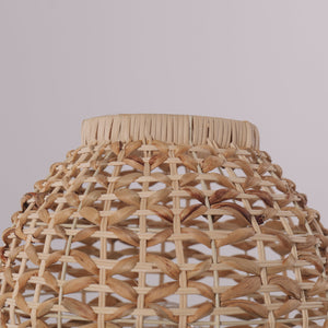 Crafted from vine, iron, and watergrass, this lamp combines traditional weaving techniques with modern aesthetics, perfect for nature-inspired homes. -