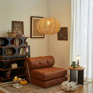 This globe-shaped pendant light brings texture and warmth with its handwoven rattan form. Its round silhouette softens interiors while adding natural flair. Ideal for cozy, modern, or nature-inspired rooms.