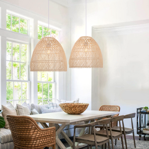 Designed to bring warmth and visual interest into your home, this handwoven rattan pendant light is a statement of natural elegance. With its dome-shaped silhouette and airy woven pattern, it perfectly complements bohemian, Scandinavian, coastal, and rustic interiors. Whether placed above a dining table, in a relaxed living room corner, or as an inviting touch in a boutique or café, it offers both function and style. Its adjustable 120cm suspension cable allows seamless installation in rooms of various ceiling heights.