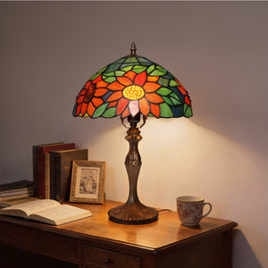 This Tiffany Table Lamp from the Floral Petals Series displays intricate hand-cut stained glass in botanical patterns, mounted on a bronze or brass tree-inspired base that adds natural sophistication. The 12-inch design delivers a soft, colourful ambient glow, perfect as a bedside table lamp or living room accent piece. Meticulously crafted using traditional copper foil techniques, this collectible lighting piece blends artisanal heritage with functional illumination for bedrooms, studies and lounge areas in UK interiors.