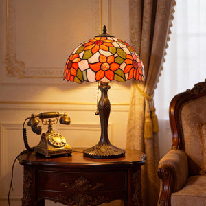 This Tiffany Table Lamp from the Floral Petals Series showcases hand-cut stained glass featuring peonies, water lilies, and daisies, each petal meticulously set within a bronze or brass tree-inspired base for organic elegance. In its 12-inch size, this exquisite bedside lamp emits a warm, colourful ambient glow, making it ideal as a statement living room accent or functional bedside table lamp. Combining artisanal copper foil techniques with vibrant floral motifs, it serves as a collectible heritage piece that enhances bedrooms, studies, and lounge areas in UK homes with timeless, artistic illumination.