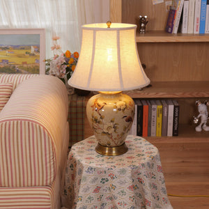 Bring classic elegance into your home with this vintage ceramic table lamp. Featuring a hand-painted bird and floral pattern, this lamp combines artistry with functionality. The brass base provides vintage charm and durability, while the fabric lampshade softly diffuses light, creating a cozy glow. Perfect as a bedside lamp, living room table lamp, or reading lamp, it blends seamlessly with both traditional and modern interiors.
