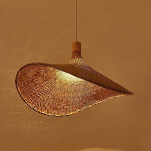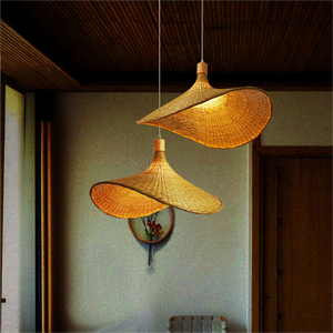 Vintage Straw Hat Rattan Woven Pendant Light for Living Room