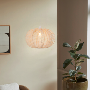 Designed for an E27 bulb, this pendant light emits a 2700K warm glow, creating a soothing and intimate ambiance. The woven rattan structure gently diffuses light, casting soft, decorative shadows across the room while still providing sufficient illumination. Whether used for focused task lighting or as a statement piece, its energy-efficient 8W design ensures a comfortable and inviting atmosphere, perfect for relaxed evenings, intimate gatherings, or peaceful reading nooks.