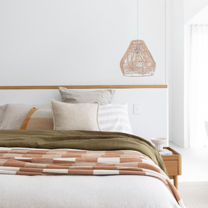 Cross-Weave Geometric Design: Handwoven rattan with an open pattern for modern texture and soft light diffusion