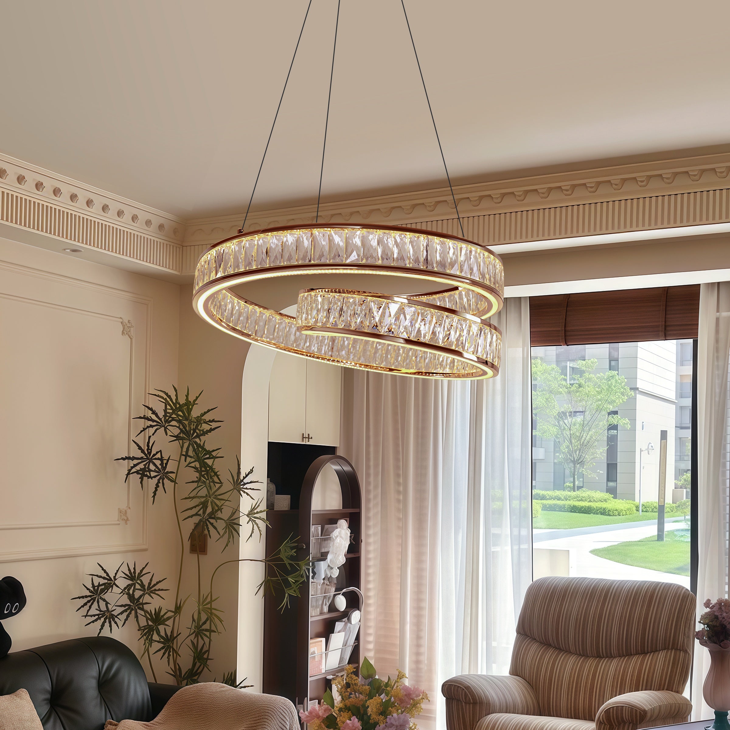 Elegant Quiet Gold Crystal Ceiling Fan with Light, 6-Speed Control & Dimmable Eye-Care Lighting