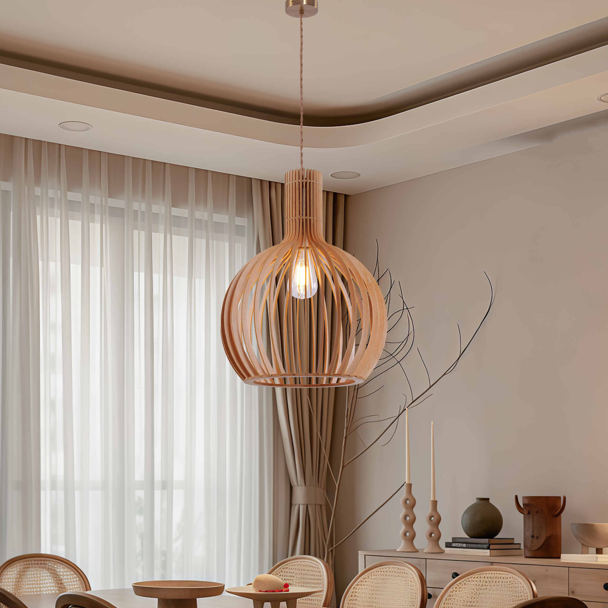 Handcrafted Wood Pendant Light for Kitchen Island and Living Room