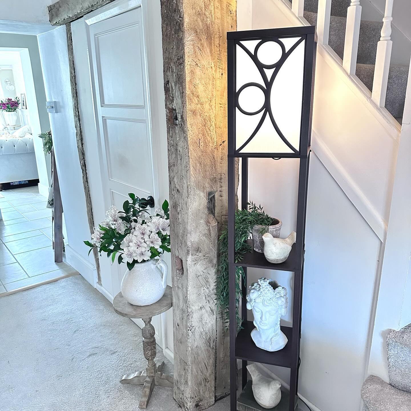 Large Blue Floral Ceramic Table Lamp with Brass Base & Fabric Shade – Elegant Bedroom & Living Room Lighting