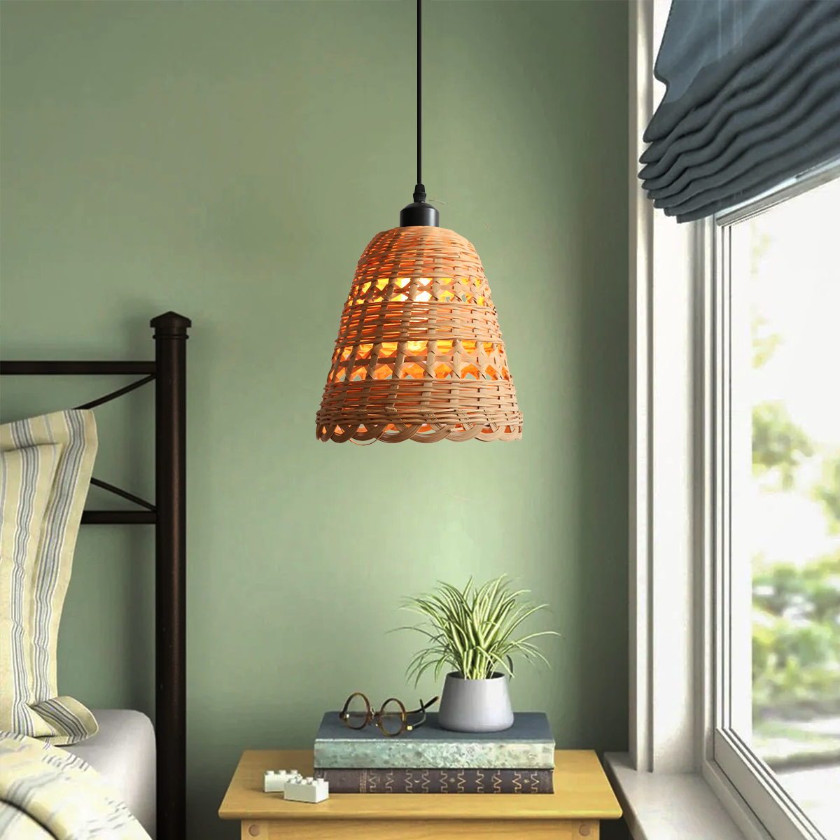 Handwoven Rattan Woven Pendant Light Retro Country Lamp Fixture for Dining Room