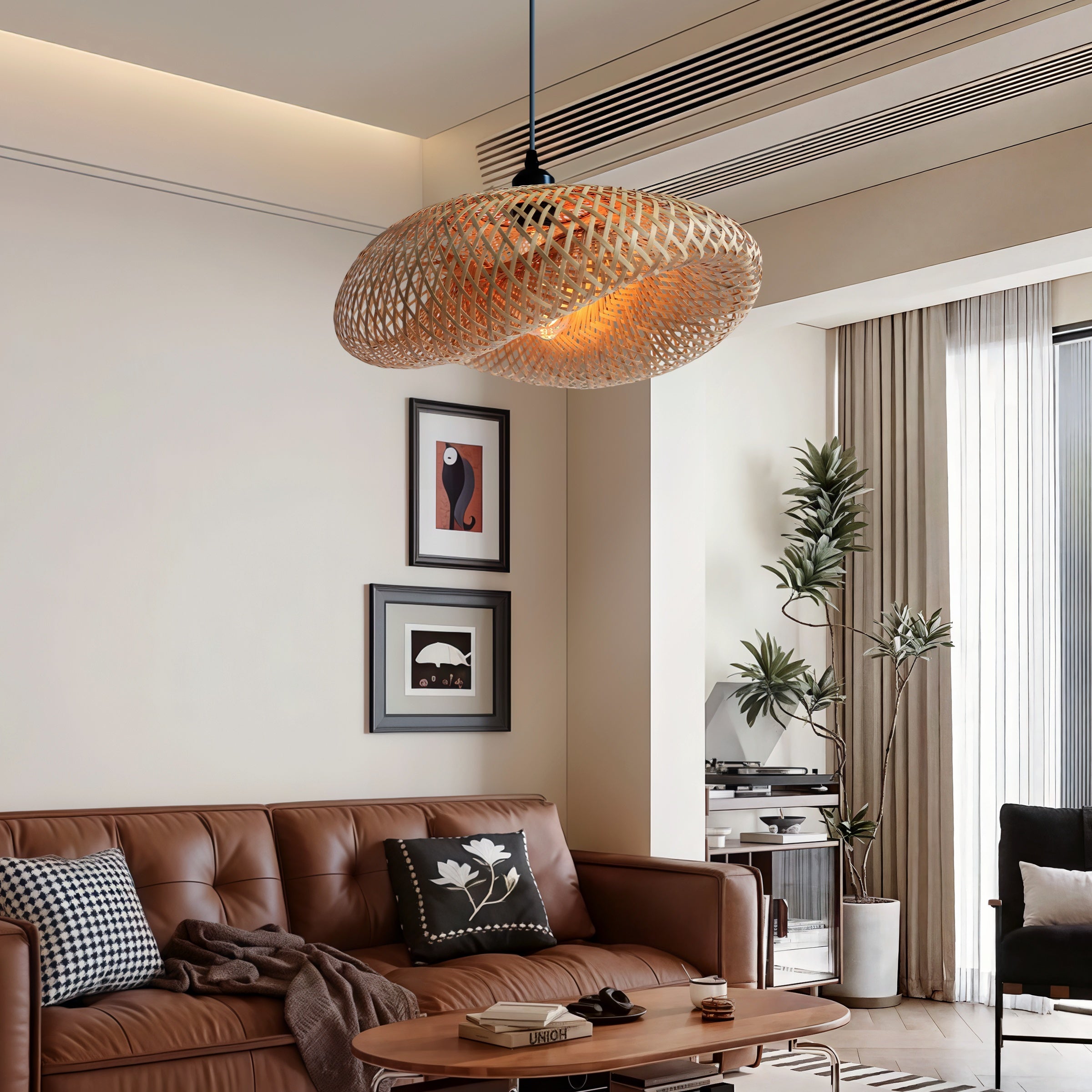 Eco-Friendly Bamboo Ceiling LED Light for Living Room Dining Spaces